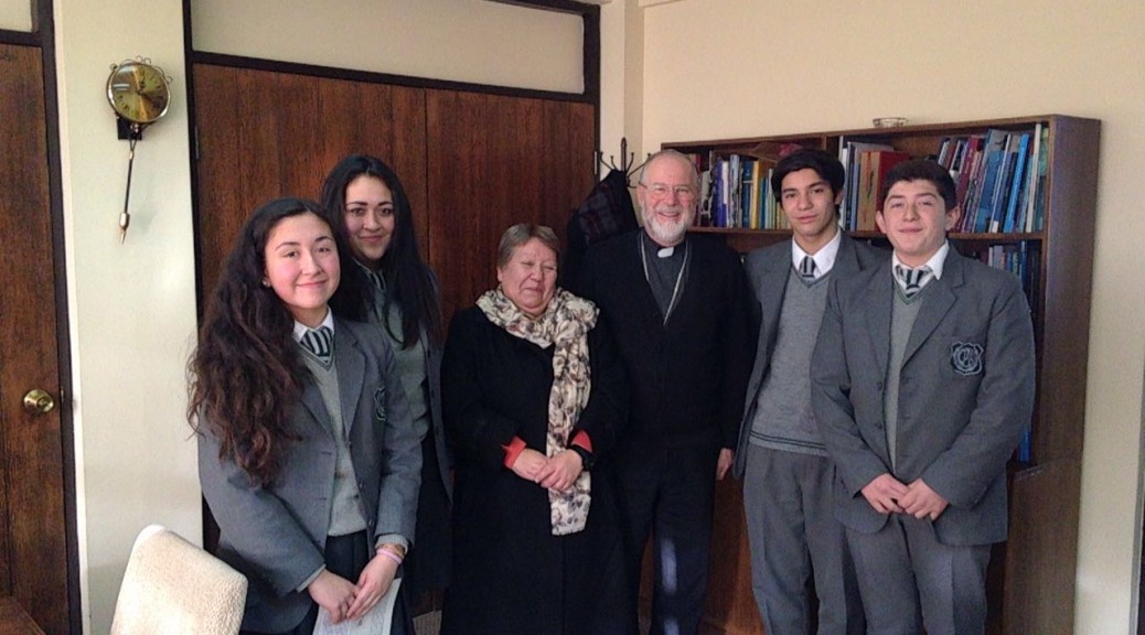 Una visita protocolar y de presentación del Centro de alumnos 2016, se realizó a la persona del Obispo Católico de Magallanes, Monseñor Bernardo Bastres. En una amena conversación sobre temas contingentes, los alumnos junto a la Directora del Colegio, llevaron un saludo de toda la Comunidad del Colegio Punta Arenas al padre Obispo.