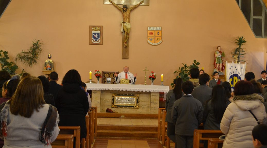 La misa de recuerdo, fue guiada por el sacerdote Pbro. Juan Carlos Fuentes Arenas y con las lecturas Bíblicas de las docentes del departamento de Inglés. La asistencia fue representativa de cada curso del Colegio, de los abanderados, de los para docentes, administrativos, profesores, auxiliares, directivos y con la presencia de la sostenedora, Sra. Ximena Plaza Carvajal.