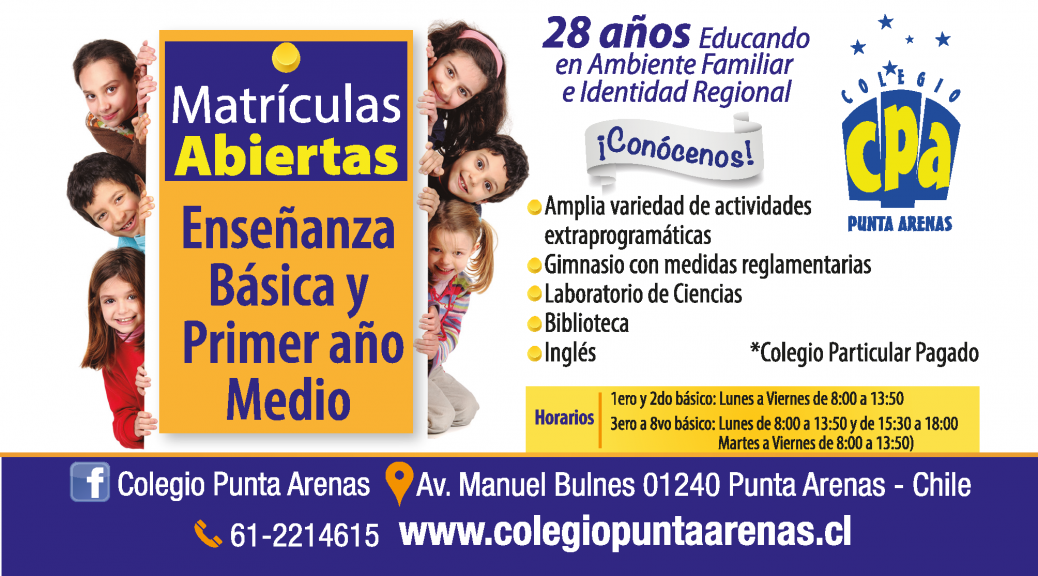 Consultas a 61-2214615 ó contacto@colegiopuntaarenas.cl