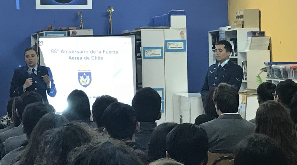 La Teniente Srta. Camila Pinto Ramírez, de la Fuerza Aérea de Chile, fue la encargada de entregar la Información sobre el ingreso a esta Escuela Matriz.Con mucha atención, nuestros estudiantes, siguieron el relato y las diapositivas que daban a conocer la experiencia de la Teniente en su ingreso a esta Escuela, la formación de base en la Fuerza Aérea, el primer año de entrenamiento y variadas anécdotas que complementaron e hicieron muy amena esta charla motivacional.