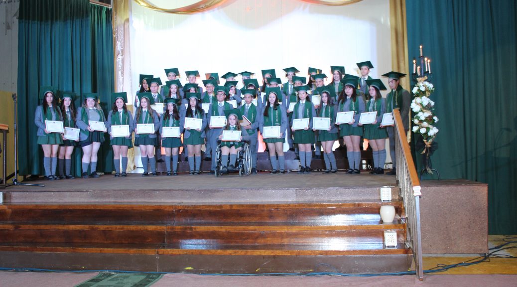 Una nueva generación de estudiantes fueron Licenciados de la Enseñanza Media del Colegio. Con mucha esperanza y alegría nuestros alumnos y alumnas del 4° año medio «Grimaldi – Sarmiento»,vistieron por última vez el uniforme de su Colegio y subieron con orgullo al estrado del gimnasio para recibir el Diploma que los acredita como Licenciados de la Enseñanza Media Cientifico Humanista. Los 37 estudiantes se presentaron gallardamente ante sus padres y la Comunidad del Colegio, llevando en sus corazones la felicidad que les embargaba en este momento tan sublime. La Ceremonia incluyó número artísticos, cambios de estandartes, discurso del profesor jefe y la premiación que destaca el esfuerzo de cada uno de nuestros estudiantes.