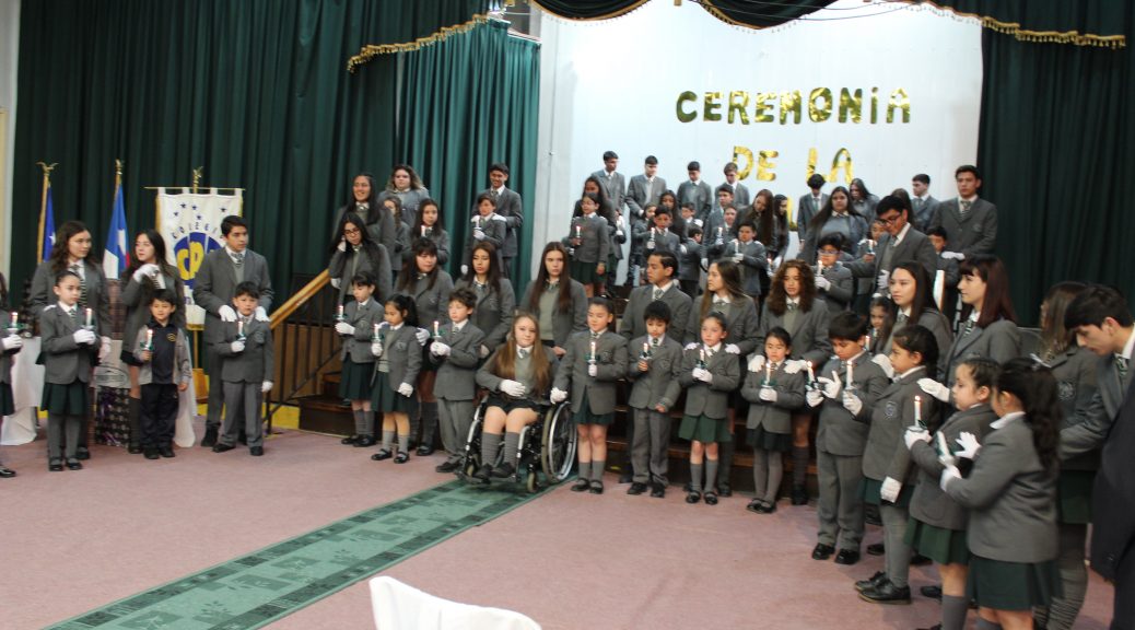 Los alumnos del 4° año Medio “Grimaldi – Sarmiento” ; entregaron la luz, que se encendió en su corazón hace 12 años. Los más pequeños del Colegio recibieron este símbolo, para que ellos continúen por la senda alumbrada por la luz de los que se alejan.