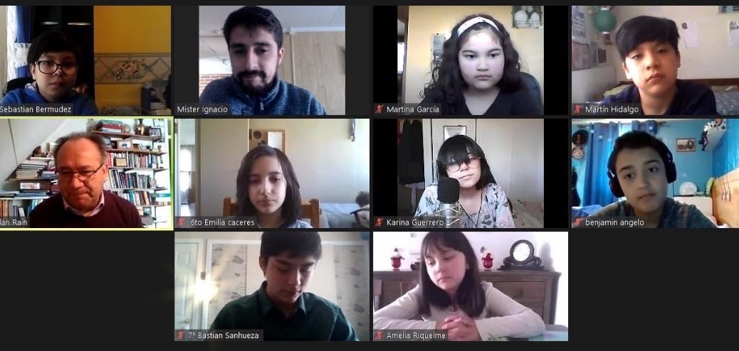 Mr. Adán junto a Miss Carmen Gloria y los estudiantes Constanza Vásquez de Cuarto Medio y Bastián Sanhueza de Séptimo Básico en amena conversación dieron a conocer los objetivos que nos hemos trazado como institución educativa en este período de pandemia y la experiencia de cada uno desde su labor y como estudiantes.
