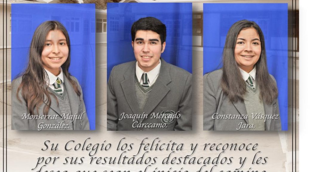 Nos sentimos felices de comunicar el buen desempeño de nuestros ex-estudiantes en la Prueba de Transición donde obtuvieron sobre 700 puntos en esta evaluación. Joaquín destacó en Matemática , Constanza en Lenguaje e Historia y Monserrat en Lenguaje, Matemática y Ciencias. Los felicitamos, reconocemos y les deseamos todo el éxito en el nuevo camino que emprenden lo que hacemos extensivo a toda la generación 2020