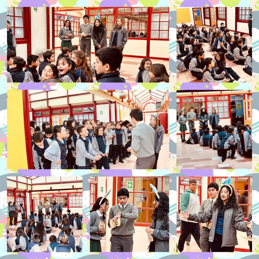 En Pascua los huevos de chocolate simbolizan la vida, fertilidad y la alegría, y su entrega es una forma de compartir y celebrar con la familia y amigos. Bajo la premisa del compartir el centro de estudiantes organizó una actividad con el primer ciclo que consistió en la búsqueda del tesoro del conejito de pascua. También visitaron el Pre- Escolar entregando un mensaje de alegría y compartir .Los felicitamos por esta bonita iniciativa y agradecemos a todos los apoderados que participaron en las actividades de Pascua!