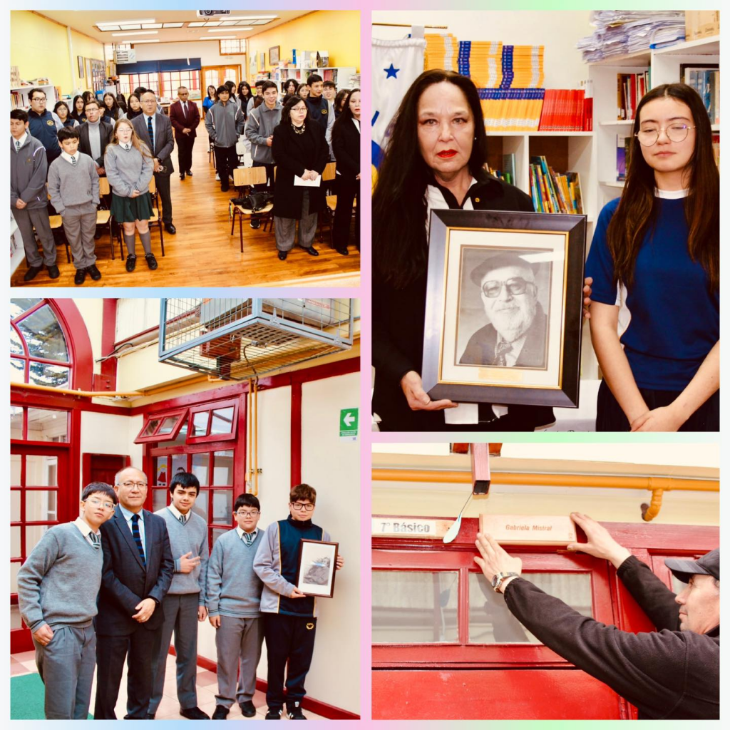 Nuestro homenaje es para Gabriela Mistral por su breve pero significativa permanencia en Punta Arenas donde fue directora del Liceo de Niñas, creó una biblioteca que prestaba libros a la comunidad los fines de semana y dictaba clases en una escuela nocturna para mujeres obreras anafalbetas en la sociedad de instrucción popular lo que revela su gran compromiso social en la comunidad.