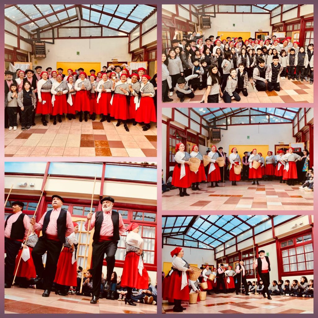 Tuvimos la oportunidad de compartir con el grupo Esencias de mi Tierra Adultos, quienes nos deleitaron con sus hermosos bailes tradicionales de la zona sur. Lo más especial fue ver a nuestros estudiantes conversando y aprendiendo de ellos.