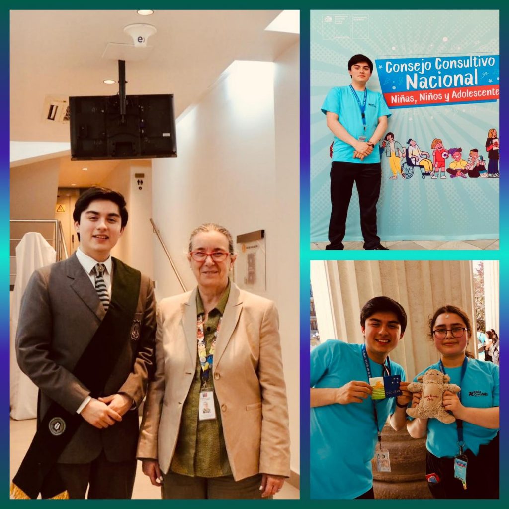 Nos sentimos profundamente orgullosos y felices de comunicar que nuestro Presidente del Centro de Estudiantes, Bastián Sanhueza, de Tercer Año Medio, ha sido elegido consejero en el Consejo Consultivo Nacional de Niños, Niñas y Adolescentes. Este evento tuvo lugar en la ciudad de Santiago y fue encabezado por la Sra. Verónica Silva Villalobos, Subsecretaria de la Niñez, quien lidera este organismo dependiente del Ministerio de Desarrollo Social y Familia.
