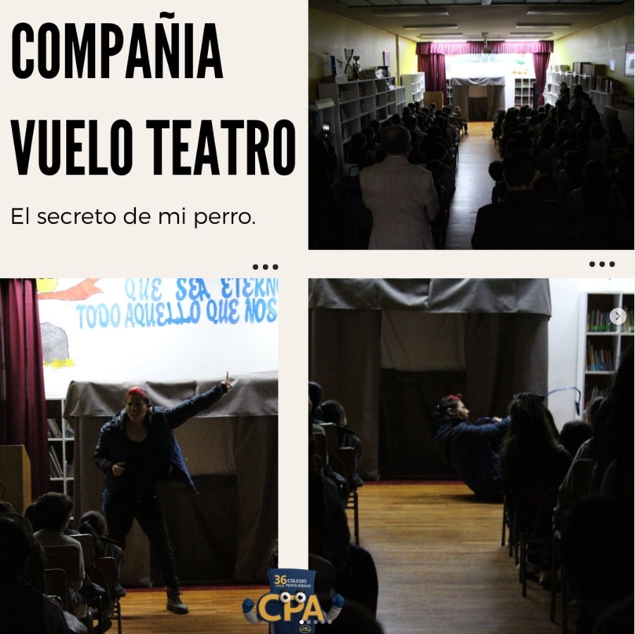 La compañía “Vuelo al Teatro” presentó hoy su obra Secretos de mi perro en la biblioteca de nuestro colegio, junto a los estudiantes de 3º, 4º básico y Prekínder Shenu. Esta actividad busca fomentar la tenencia responsable de animales y concientizar sobre el compromiso que debemos tener con nuestras mascotas.