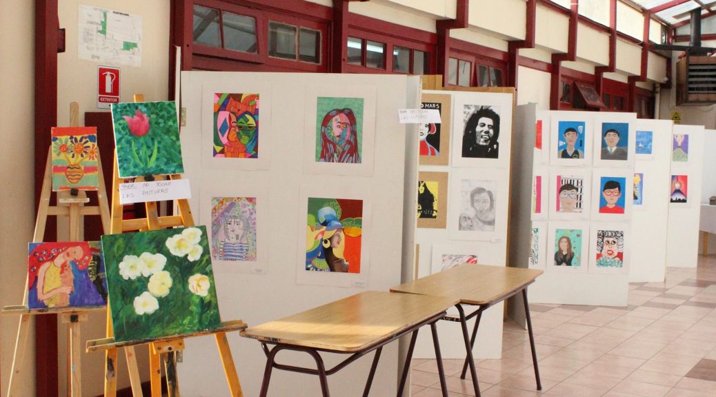En uno de los patios centrales del colegio se presentó la MUESTRA DE ARTE 2017 que expuso variados trabajos en diversas técnicas como: acuarela, témpera, serigrafía, grabado, etc.Los alumnos de 7mo a IV Medio desarrollaron su capacidad creativa en propuestas de Autoretratos, Paisajes, Naturalezas Muertas, Modelado en Arcilla, Esculturas, etc.