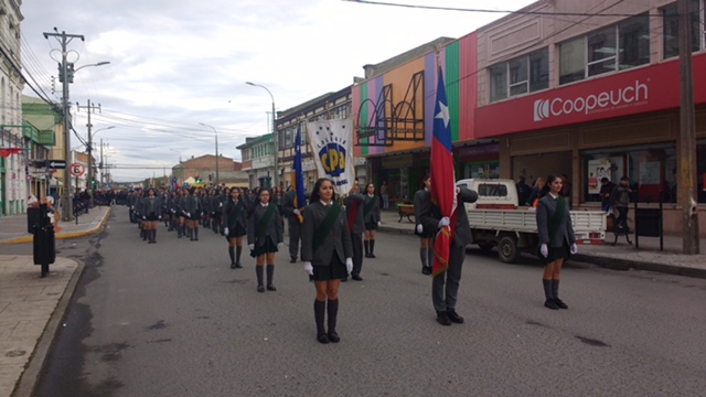 Al mediodía se efectuó el desfile de los estudiantes que rindieron homenaje a las glorias Navales. Con una temperatura bajo cero, nuestros alumnos tuvieron una impecable presentación frente a la comunidad de Punta Arenas. En esta ocasión fuimos representados por los Cuartos medios «Ramón Cañas Montalva» y » José Mardones». También por el tercero medio «Manuel Bulnes», quienes junto a los abanderados y directivos del Colegio brindaron un gallardo paso frente a las autoridades.