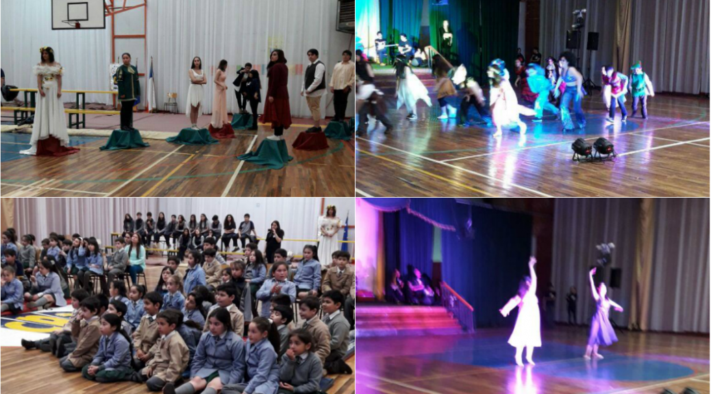 El martes 22 de noviembre a las 11.00 horas se llevo a cabo en nuestro colegio la actividad organizada por el Departamento de Lenguaje, denominada «Cervantes y Shakespeare, 400 años de locura y romanticismo», donde su objetivo principal fue conmemorar tan importante legado literario – cultural de dichos escritores a través del teatro, la danza y música.«El Quijote de la mancha» y «Romeo y Julieta», son dos hitos de la literatura que han trascendido para quedarse en los corazones e ideas de todo el mundo. Con una puesta en escena impresionante, mezclando diversas habilidades artísticas y musicales, más de 60 estudiantes de Enseñanza Básica y Media dieron vida al evento que tuvo una duración de 40 minutos. Los alumnos fueron guiados por los docentes de Lenguaje Daniela Alvarado, Fernanda Cárdenas, Cinthia Hidalgo y Hernán Pérez, mientras que la parte musical fueron apoyados por las docentes Paula Zamorano y María José Cáceres. Las encargadas de las coreografías fueron las alumnas de 4to medio «B» Javiera Salinas, Camila Oyarzo y Natalia Toro, y quien estuvo a cargo de los medios audiovisuales fue la alumna Catalina Cancino, también de 4to medio «B».