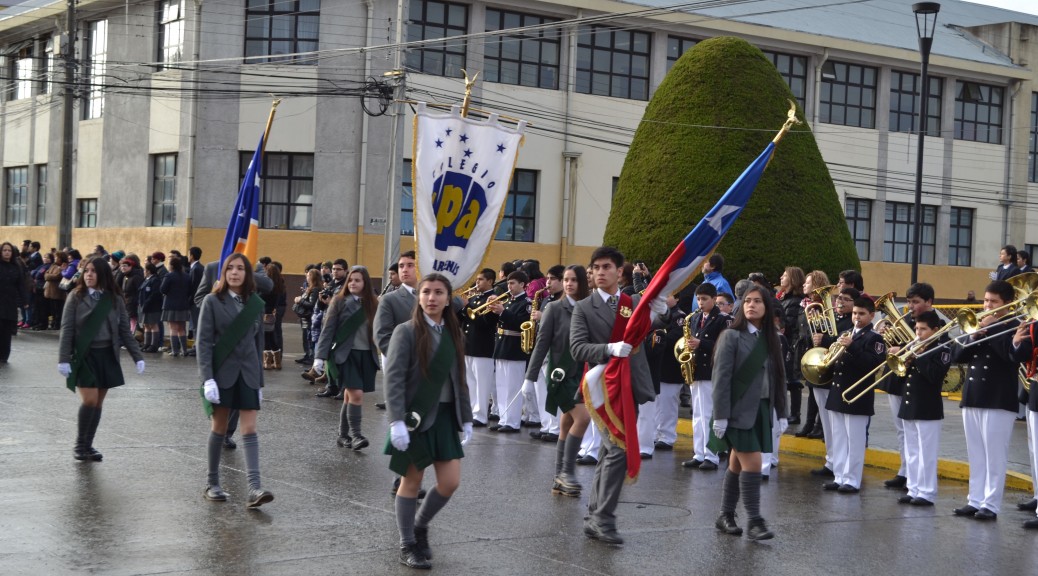 Con una notable participación de toda la Comunidad del Colegio se efectuó el Desfile en la Plaza de Armas. Desde los más pequeños, pre kínder, pasando hasta los alumnos de 4° año medio representaron en forma gallarda a su Institución. Los Docentes, el Centro de Alumnos y el Centro de Padres también se hicieron presentes desfilando ante la Comunidad Magallánica.